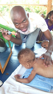 His limbs are so much stronger and his swollen tummy has subsided, and he’s interacting with the adults and children around him.