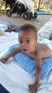 Yesterday it was Auntie Jane who was working with him, while headmum, Prescha, did the same with Jonathan. They always work with two babies because then David isn’t been singled out as different and all our children are equally special.