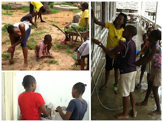 The kids really enjoy helping to keeping their school clean and tidy, working side by side with their teachers to spruce it up .