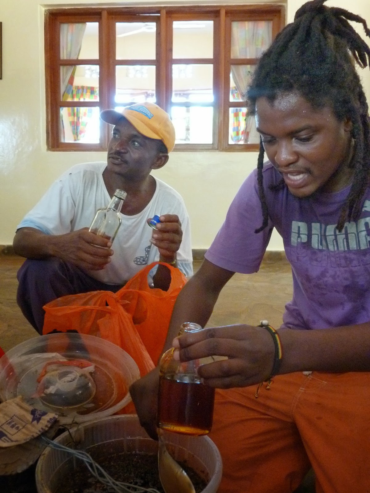 The honey gatherers, who don’t wear any protective clothing when they climb the trees to collect the spoils, brush the crust to one side, and scoop clear honey out into bottles.