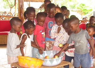 And for those kids who are at home, and not on visits to relatives, she had a treat – fresh apples!Apples are a delicacy in Kenya, and the kids crunched and munched with glee,