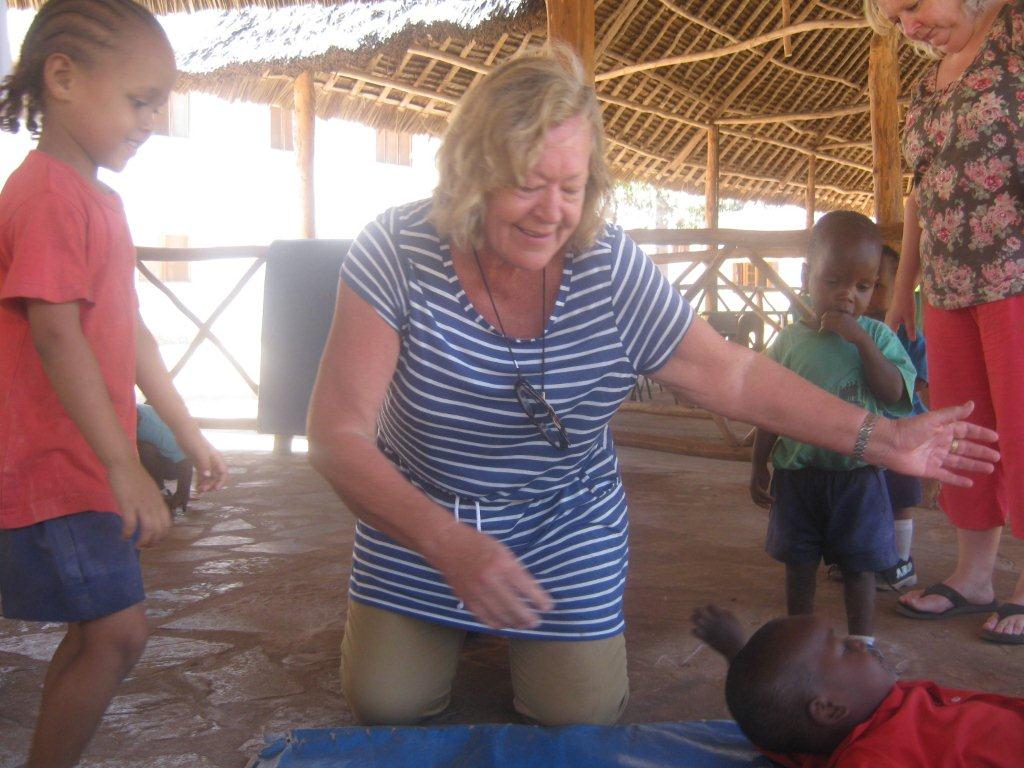 In these pictures Auntie Coral, is getting all the littlies involved in a new game at breaktime, making sure that no-one misses out on a turn with Auntie DawnHeather keeping a watchful eye for any child needing an extra hand.