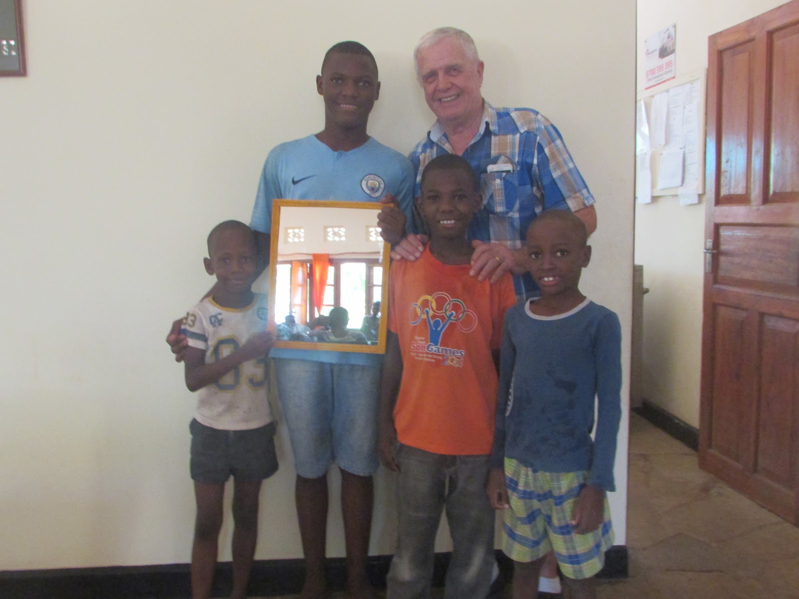 The boys won a mirror for their room which was presented to the by Papa Dave.