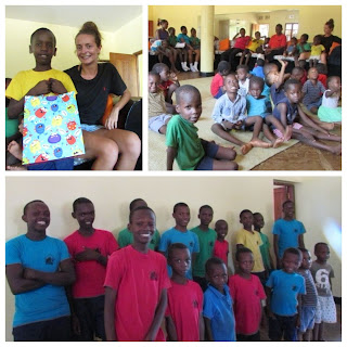 Volunteer, Auntie Gussy, was delighted to hand over his birthday goody bag.