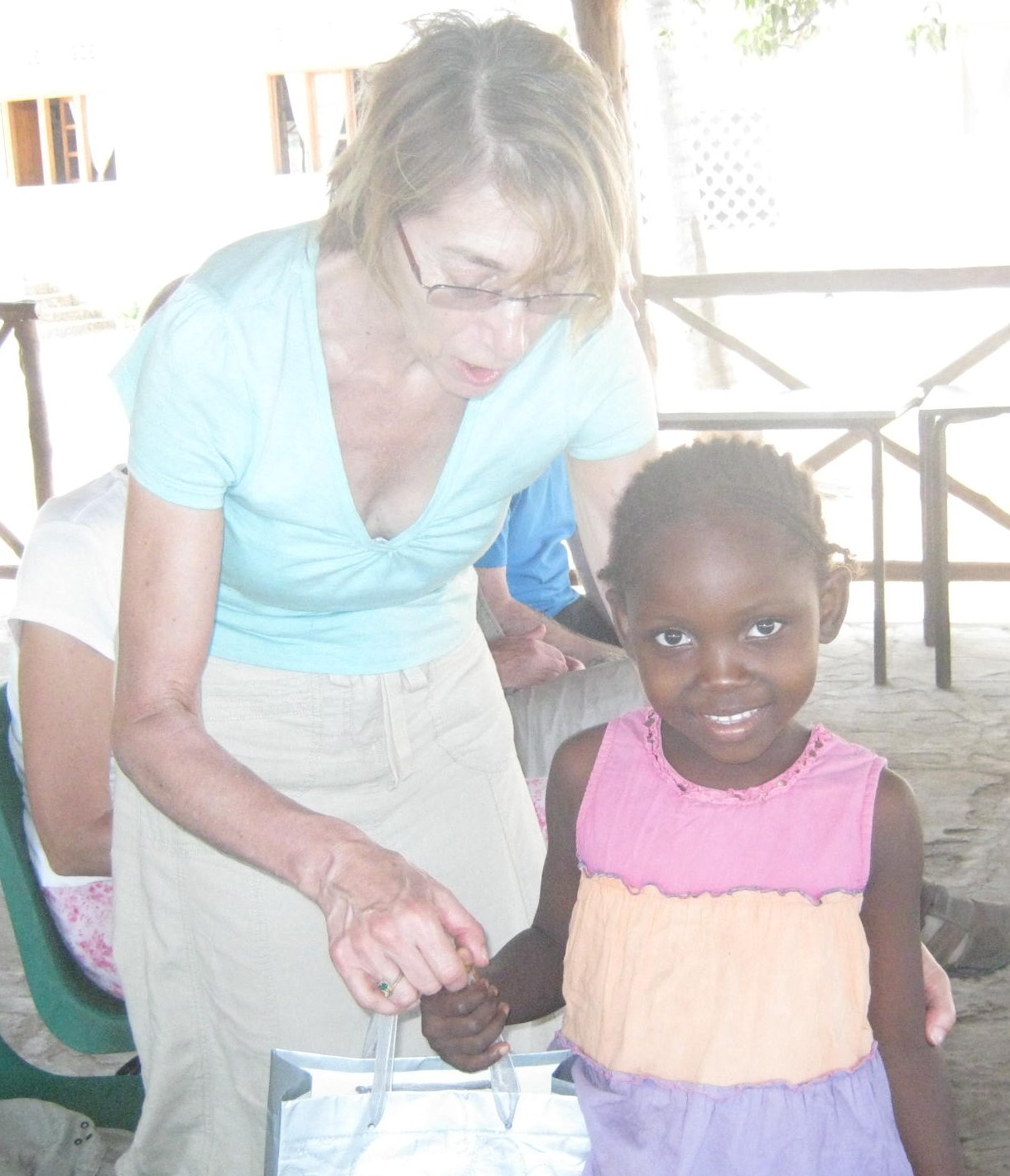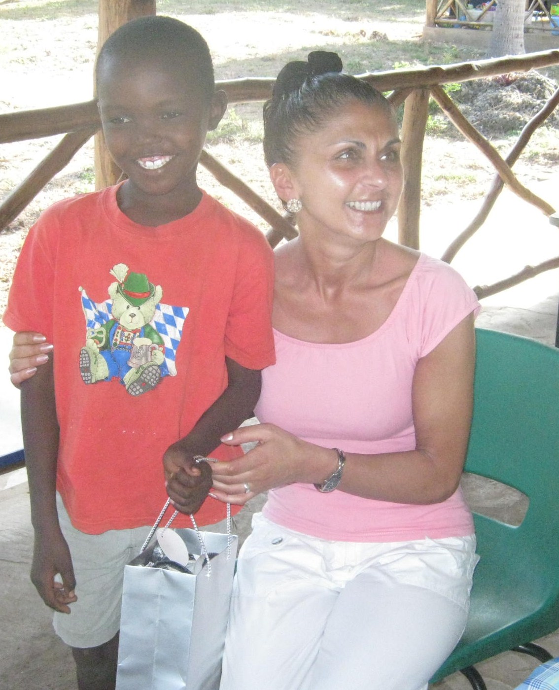 Stepping into the spotlight for that birthday magic  this week were Musyoka (pictured with visitor Thalia Venturi handing over his gift) and Lily (with visitor Sue Hayes).