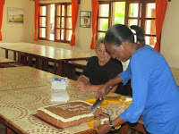 After Rose cut the cake, Mama and all the staff tucked in to a piece.