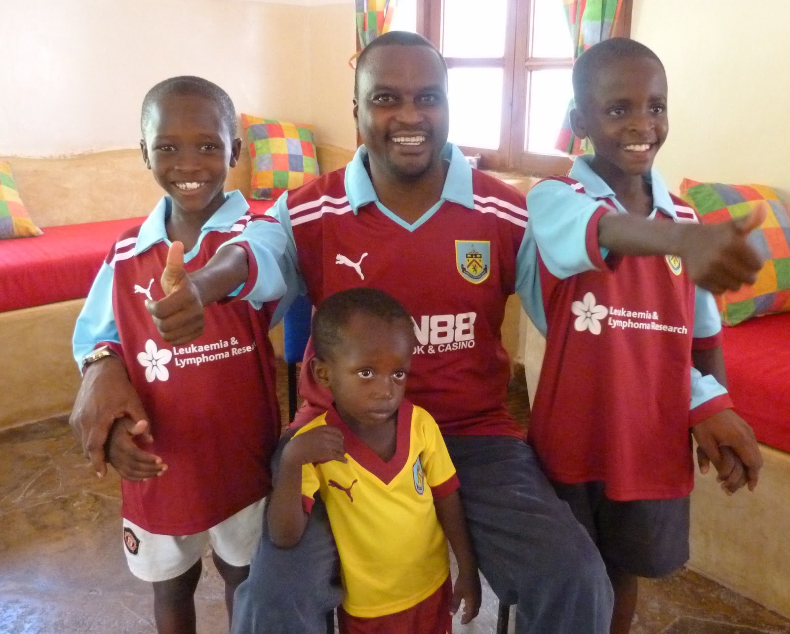 Our kids look so bright in their new Burnley shirts, given to our family by the town’s football club.
