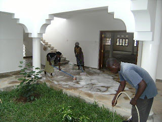 The girls were busy washing the floors, Gideon our gardener is putting the finishing touches to the gardens in the courtyard.