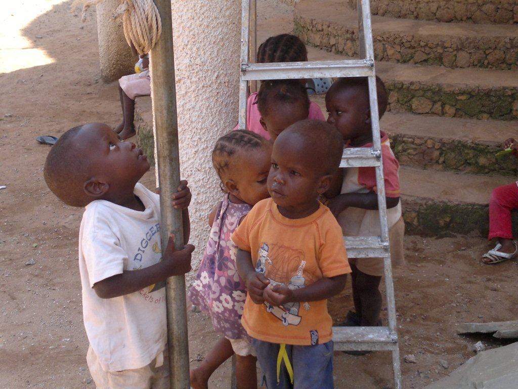 But kids will be kids and spotting a ladder propped against the wall, Harry  and Peninah were soon stepping up to see the world from a different level.