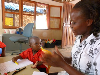 Our children, unlike in most Kenyan schools where learning is by repetition, are learning through play and creative work – colouring, painting, pasting, playdough, plus singing and playing games.