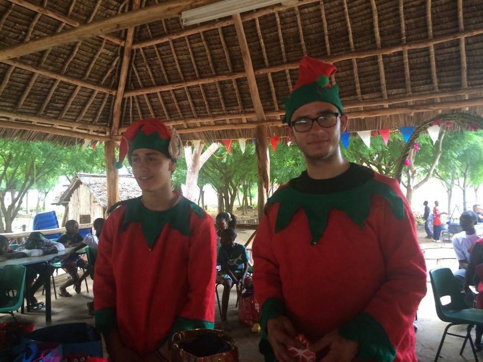 Volunteers, Ben Cheston and Maxwell Reid were in the right place at the right time, and there were costumes, in just their size, in Santa’s sack