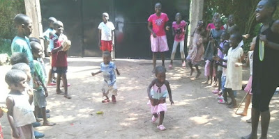 The girls lined up to cheer on Esther while the boys were rooting for David.