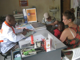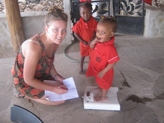 Jess,19, who is studying social work at Uclan, Preston, has been helping to keep the growth records of each child – measuring height and weight (here Peninah is on the scales with Rosie looking on) and she also went with Auntie Rehema to the clinic taking toddler Stevie, who has had a poorly chest, and Amani, who has teething troubles!