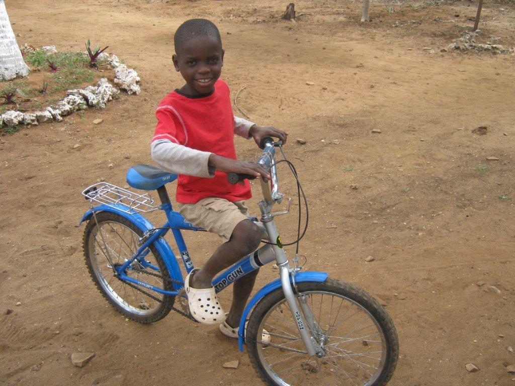 Fakiri has been lucky enough to have a bicycle bought for his birthday by Louisa Gee one of his Happy House Family members. He was so thrilled, when he saw it. He is very good at sharing with the other boys, as brothers should.