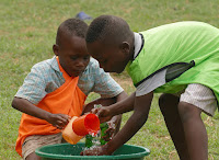 On the field, the children, those who live at Happy House and those repatriated to relatives in the community, were eager to show who could move the fastest.