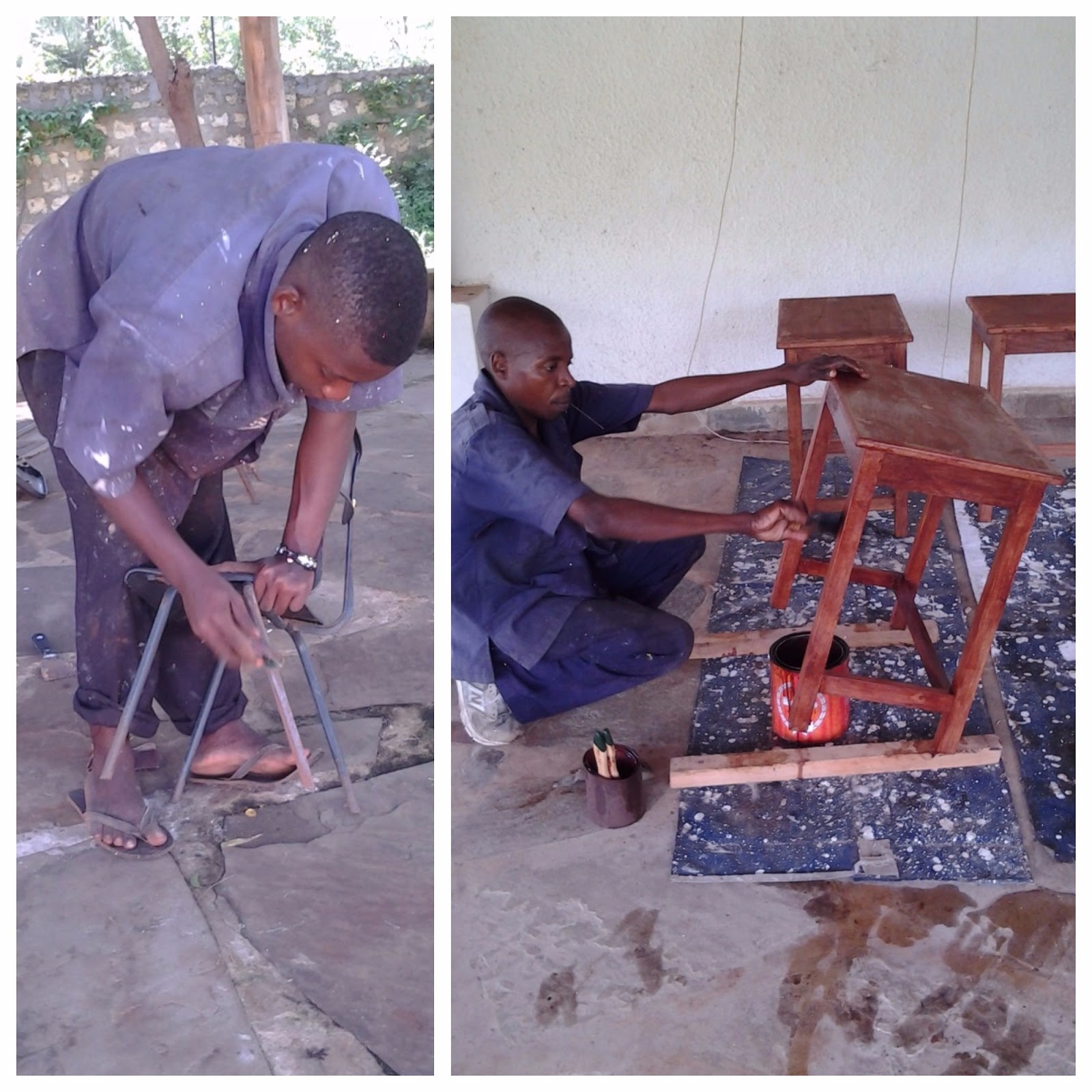 A willing band of helpers carried the desks, made by our joiner Charo and his assistant, Isaac, into class.