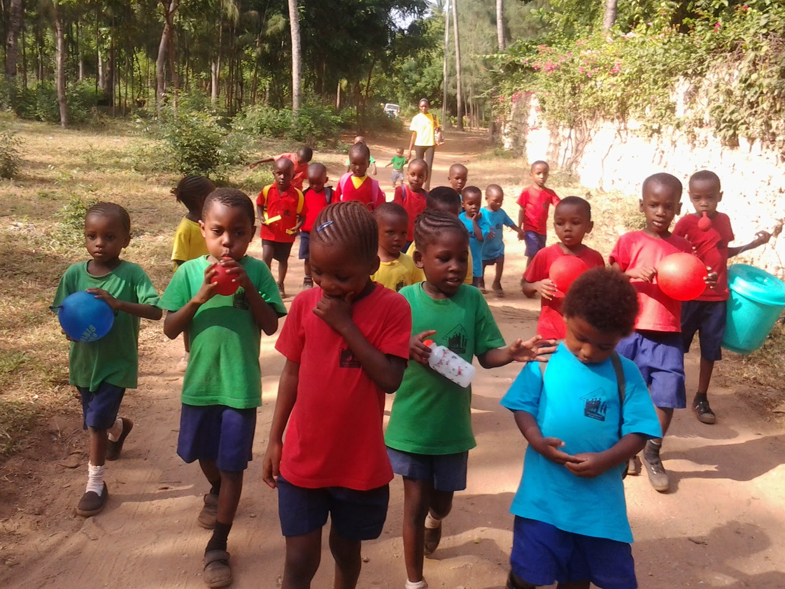 And the closer they get to home after their first day in our newly built kindergarten the noisier and more excited they get – chatting, singing and skipping along.