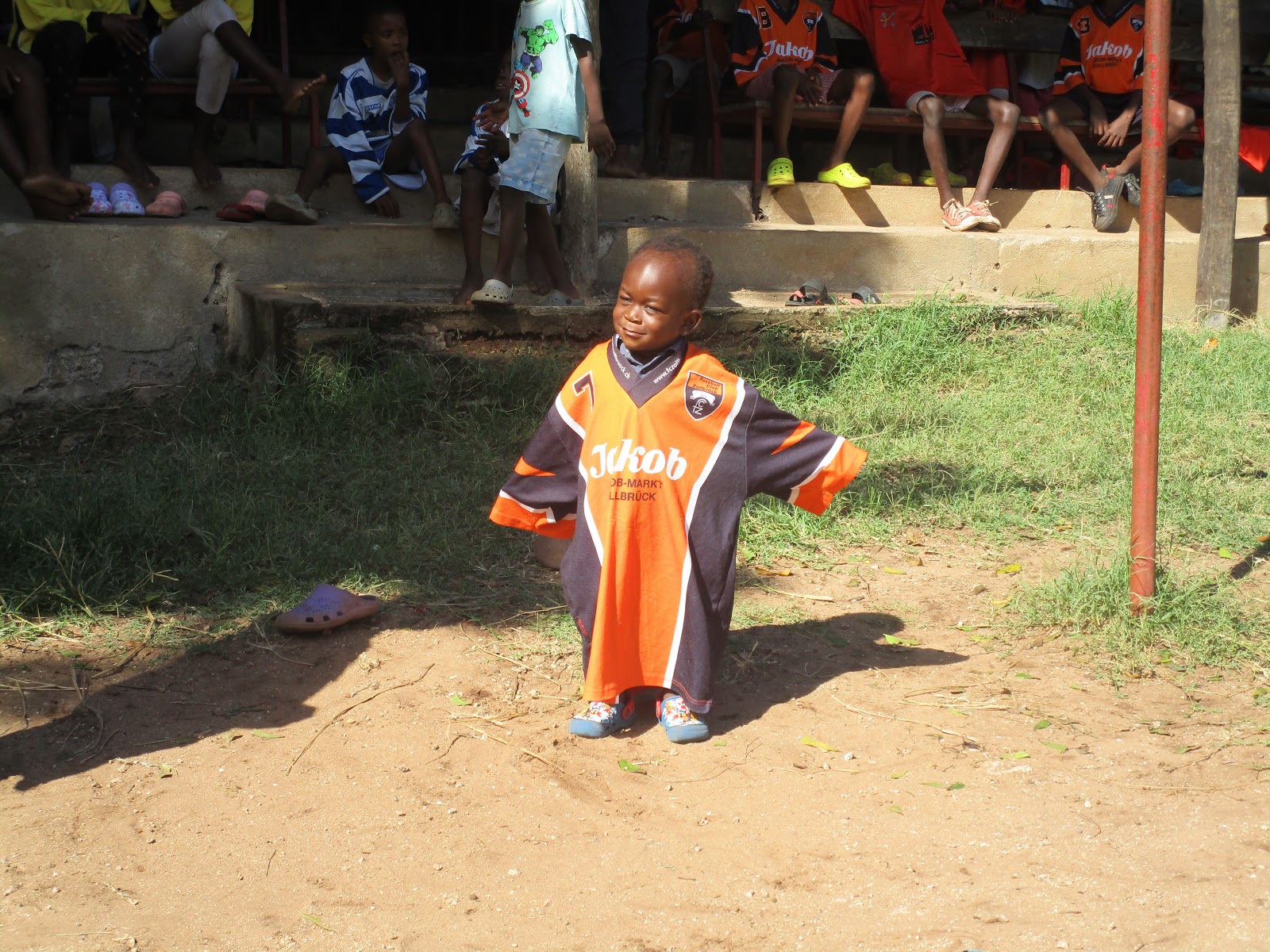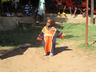 And everyone joined in – even Victor who wanted to wear a football shirt too! Evans reports “Mama was so pleased with their results and so she decided that we should have a have a very nice sports day. “On this special day, she had decided that we were also going to take a very nice treat of fruit and cream.“The kids really enjoyed every minute of this day and they were very happy they had made Mama pleased with their results .“Every one enjoyed themselves our little brother victor who also participated in one of the races and he did his best. “We had different kind of games like races, rounders, tug of war which was my best sport to watch.” The treat was a fruit salad and it was a nice change for the kids. “They are happy and they can’t stop loving their Mama Sue and Papa Dave because they are very special people to the kids and the whole family.”In this video Rukia tells us a little about the event while the kids enjoy their treat.
