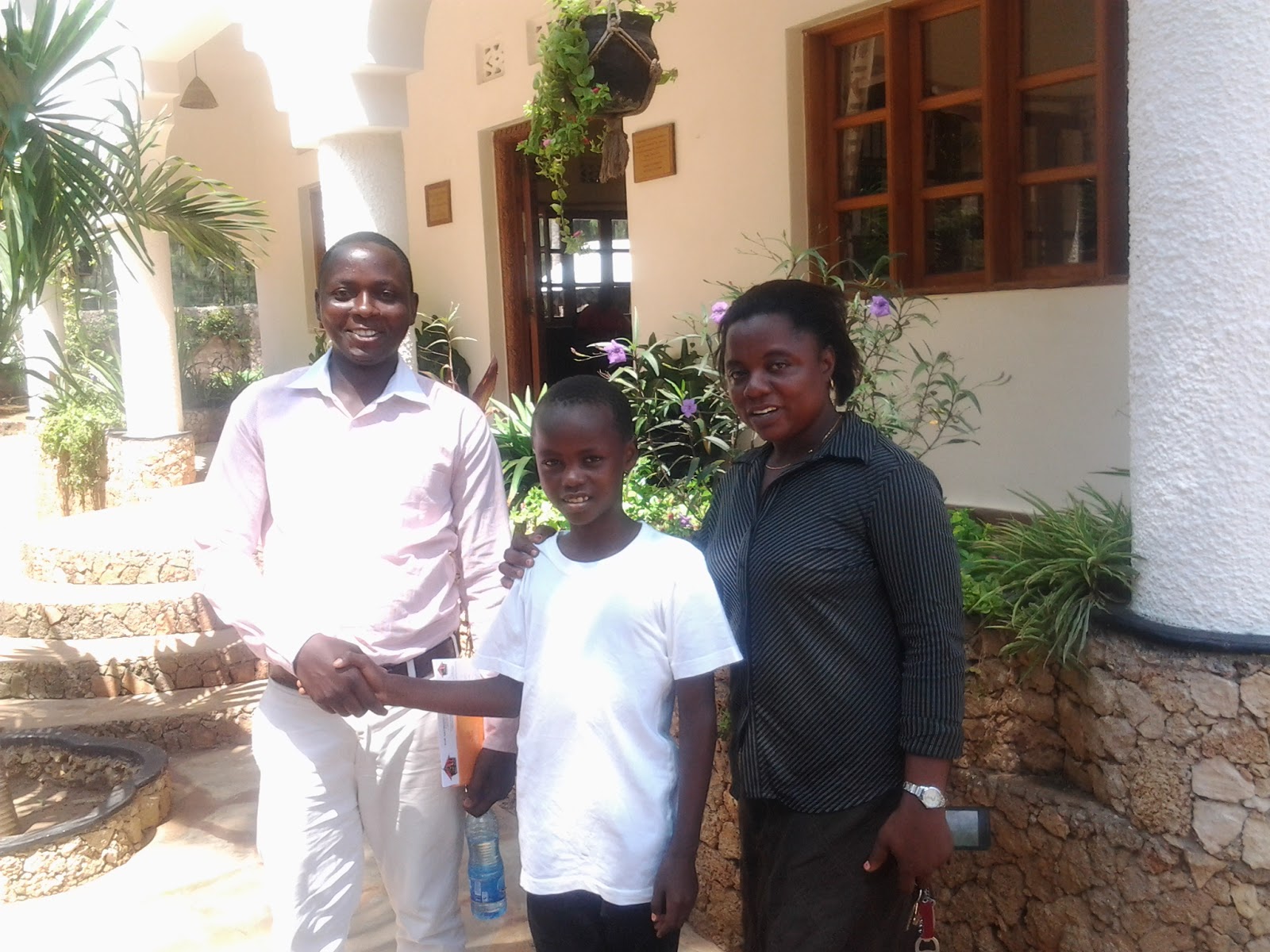 Key workers at Furaha, Samson and Evelyn, made the journey to collect him.