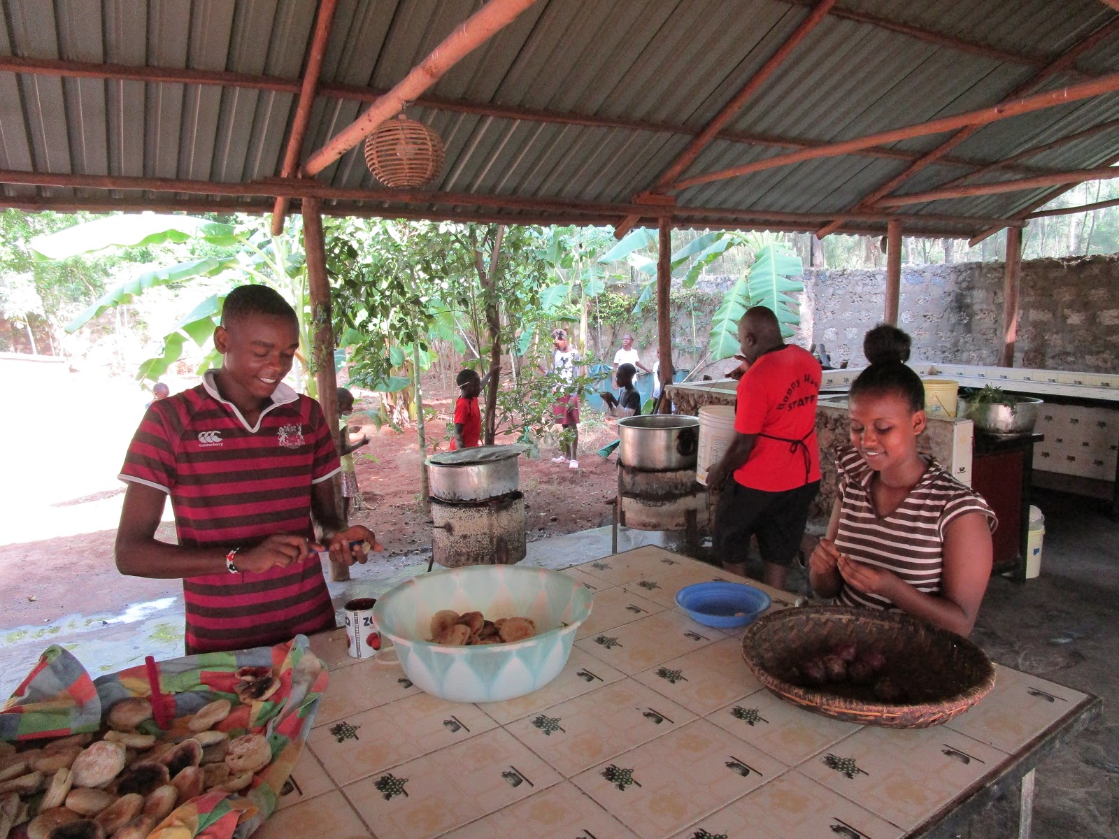 Being a part of such a big family where there is a great emphasis on caring and sharing means they are eager to help each other and to help around the house.Today, Prscilla, Evans and Rukia are helping in the kitchen.
