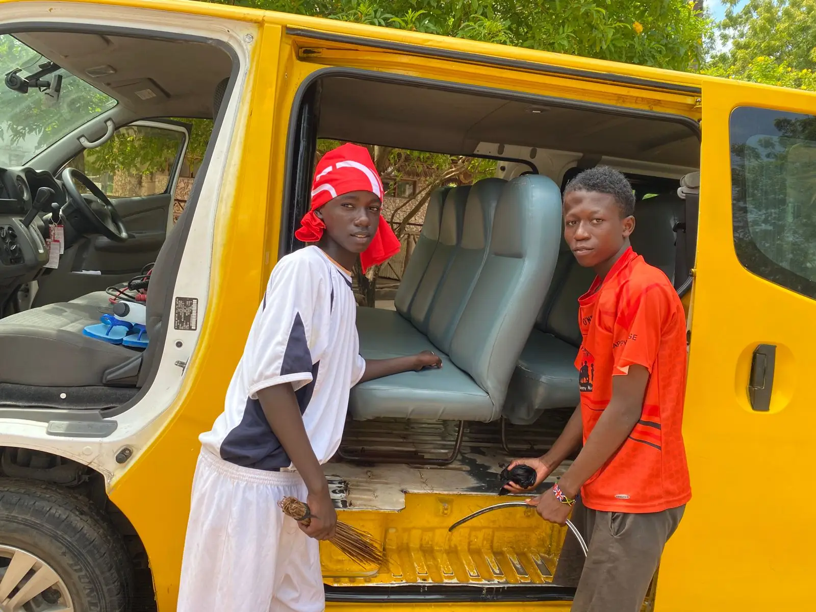 As the new school term draws closer, Brian Hayward was happy to lend a hand to Uncle Baya in giving the school bus a good clean, ready for the reopening.