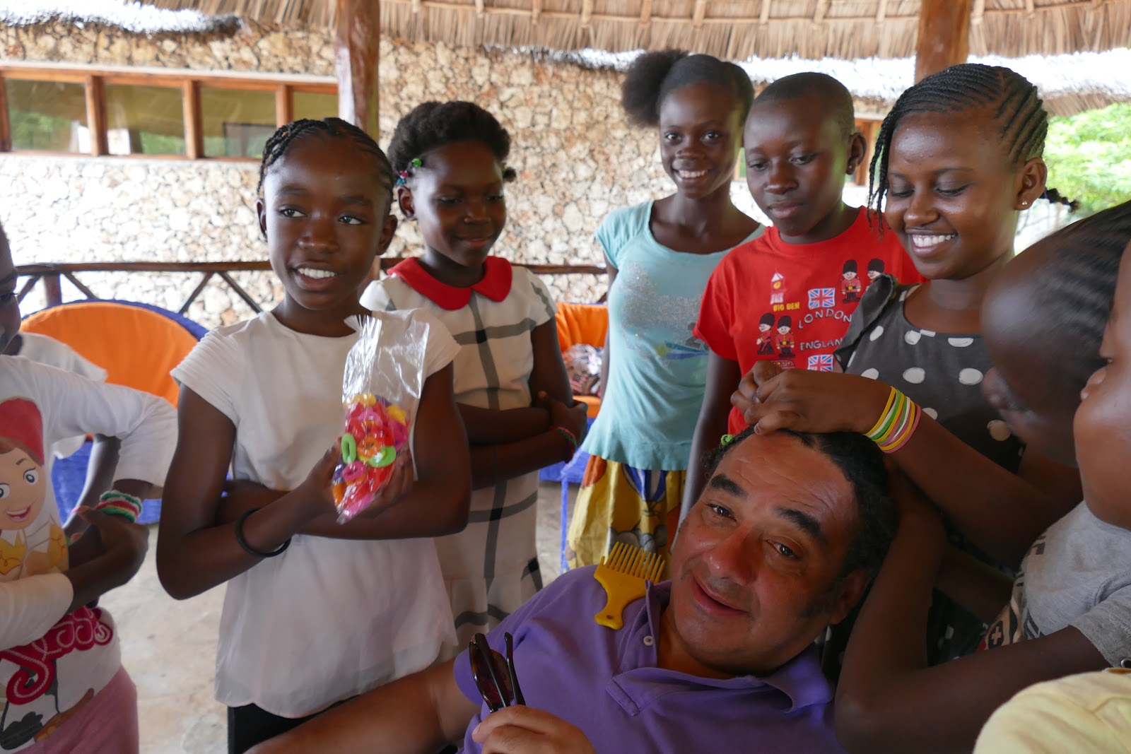 Always ready for a new challenge they got his locks into braids in no time, with Mama Sue joining in armed with scissors.