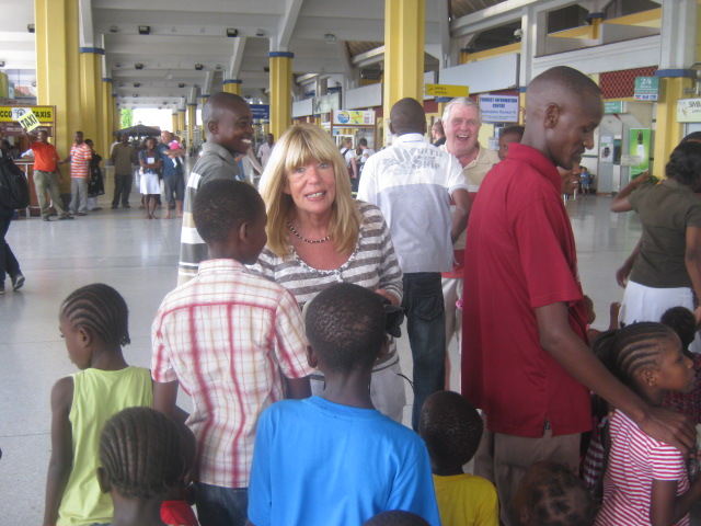 From the arrivals, through the car park, to the waiting transport  the  Happy House family was a joyful procession – everyone singing and dancing.