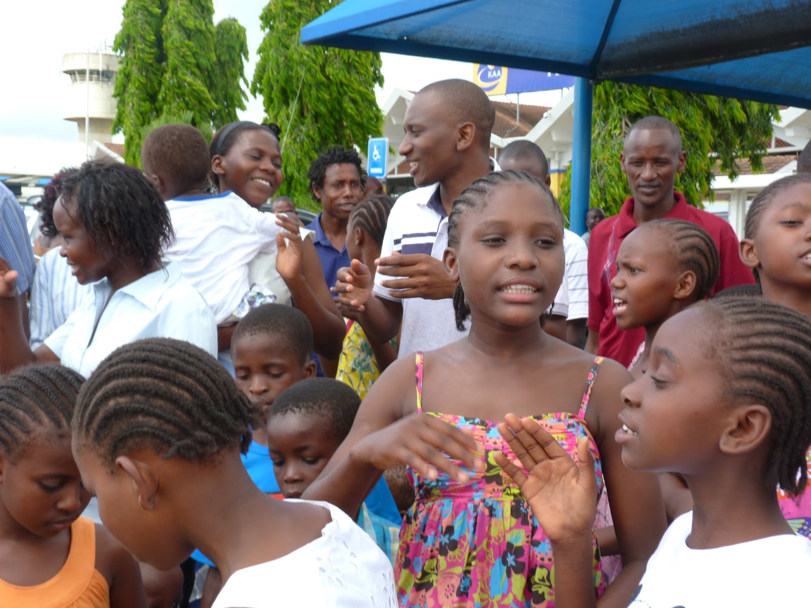 I doubt Mombasa Airport has ever seen anything quite like it, our children singing and dancing, everyone kissing and shaking hands and welcoming  their Mama, Papa and Auntie Libby back home to  them at last.