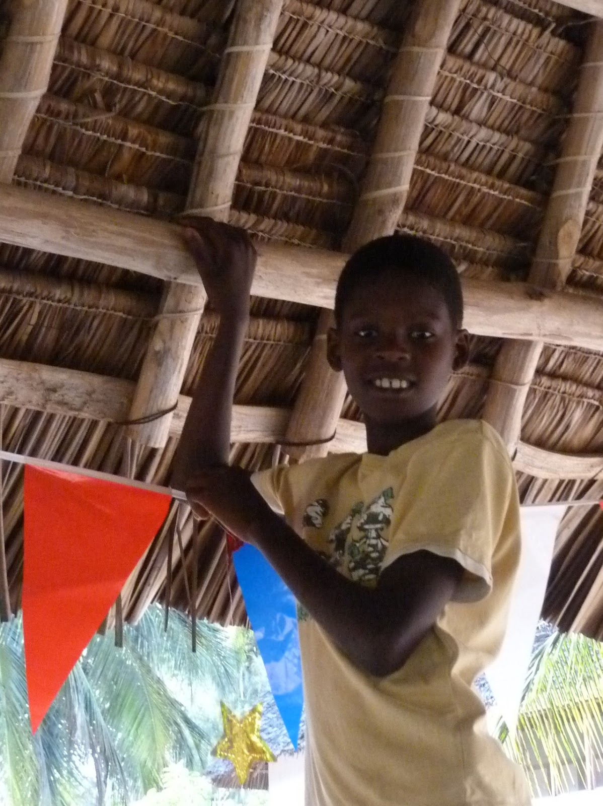 David,  who a year ago was giving us great concern because he was just such a floppy listless one-year-old, was standing up in the banda – as bright and eager as all his brothers and sisters to say hi to Mama and Papa.
