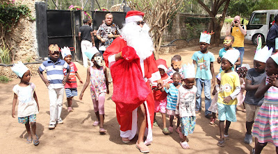 With Auntie Rose as his able assistant, Santa handed out gift bags to each child.It took some time, and in sweltering heat, with around 140 children each waiting their turn and joining in the the excitement of their brothers and sisters as they discovered what they had received,