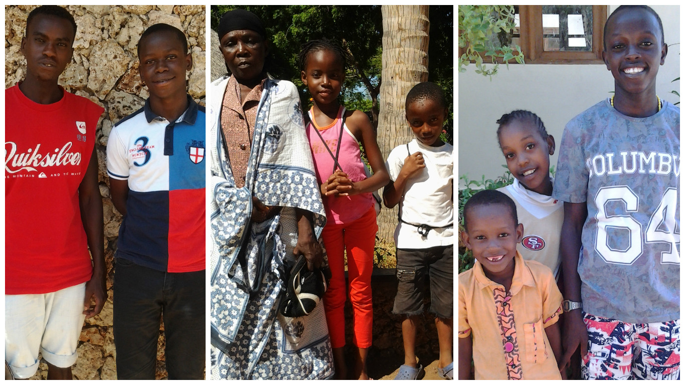 Pictured are Baraka with his older brother;  Hussein and Husna with their grandmother and John, Daudi and Diana.