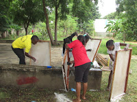 They really enjoyed splashing about cleaning the netted window screens which keep the insects out of their rooms!