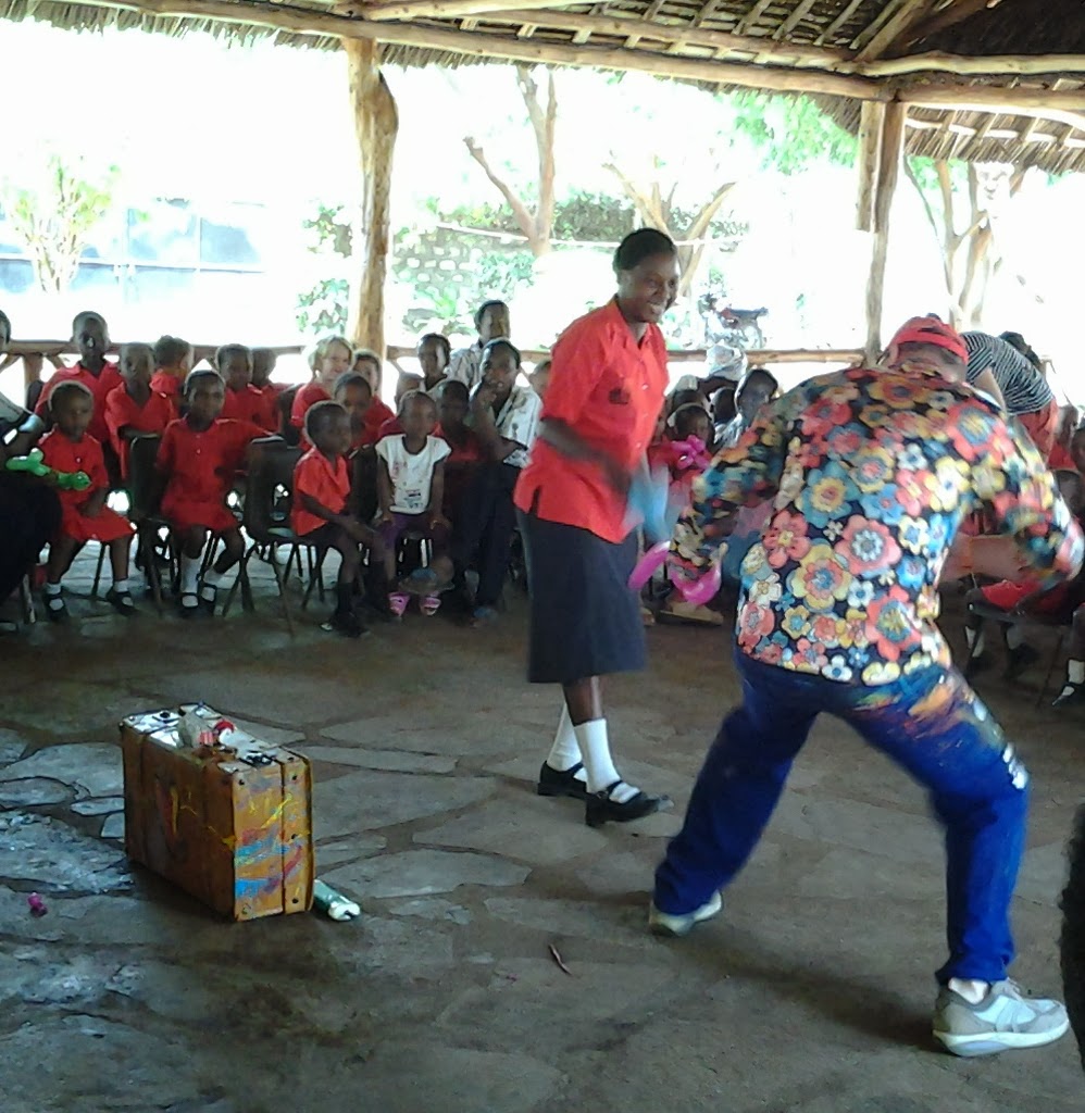 The kids watched with delight as Gregory made animal balloons, and then after making swords from balloons he invited two youngsters to a duel .., with him emerging as a very poor loser, which his audience found very funny indeed!