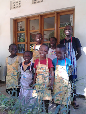 Brenda Groves, Auntie Brenda to our family, very kindly sent a parcel of colourful aprons for our youngsters and they were thrilled to bits!