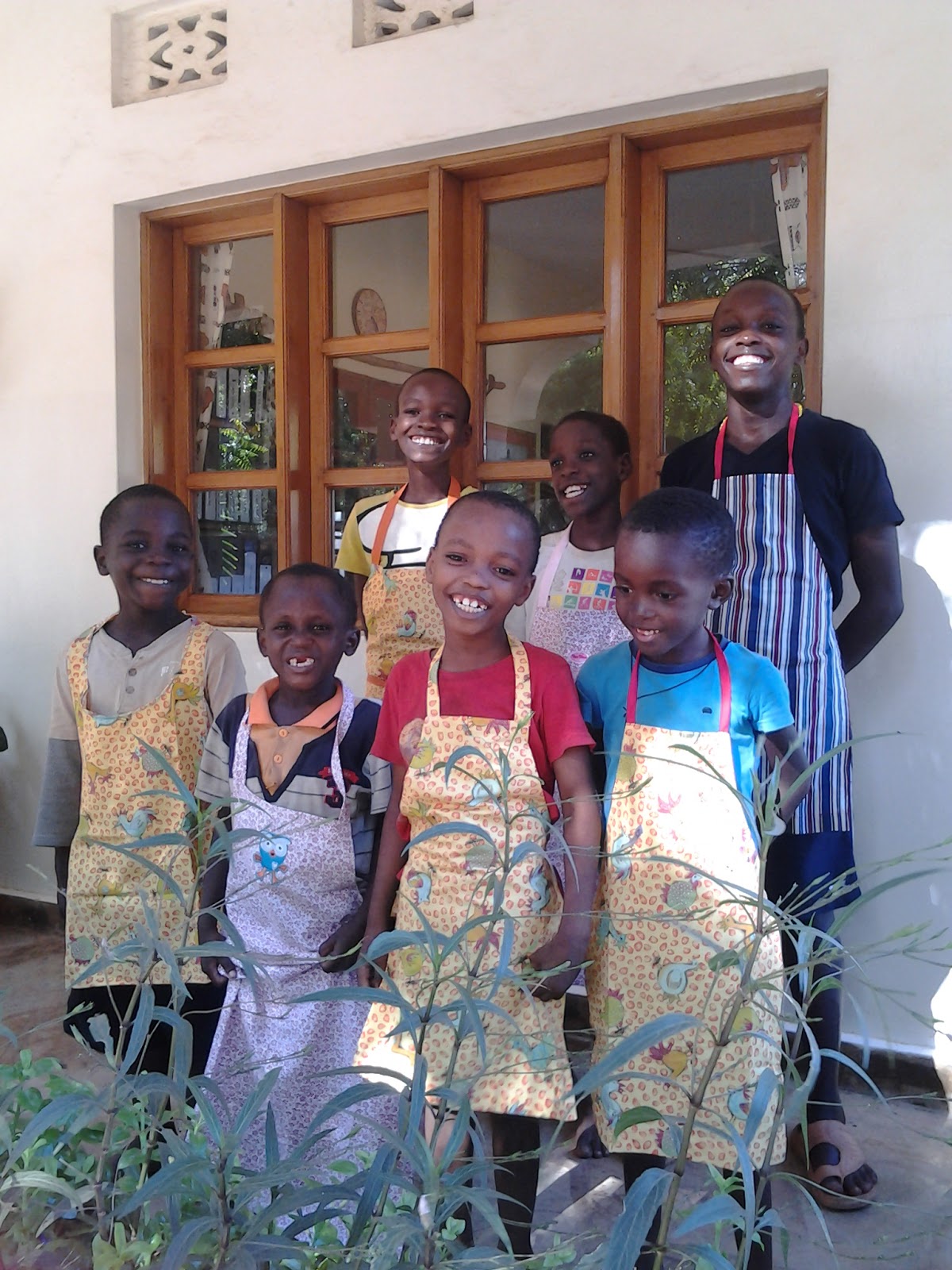 Brenda Groves, Auntie Brenda to our family, very kindly sent a parcel of colourful aprons for our youngsters and they were thrilled to bits!