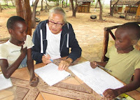 While school was taken over by KCPE exams, Happy House became a centre for learning.Mr Omoi spent time giving computer lessons using the laptops; Mr Paul was helping youngsters with times tables (he’s pictured with Khalid) and Auntie B gave Stephano and Prince extra time to concentrate on improving their handwriting.