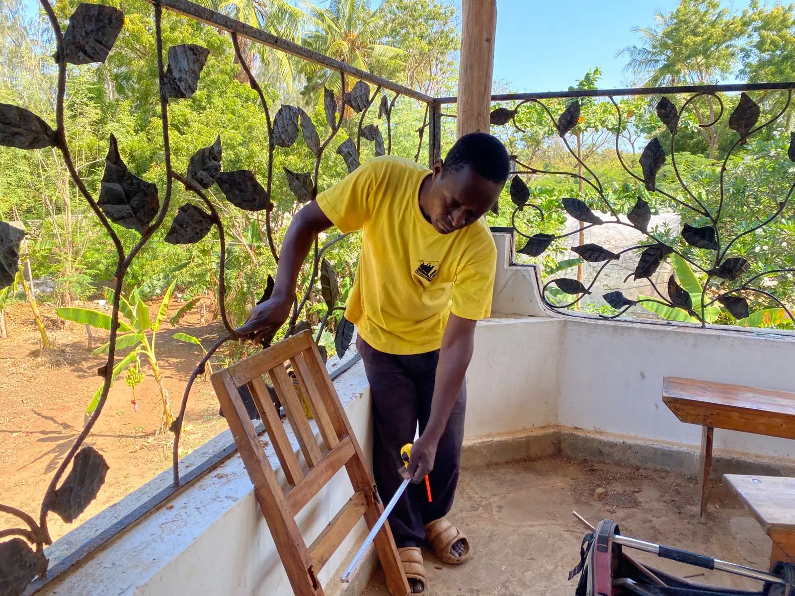 Uncle Charo, our Happy house joiner, has been busy with maintenance work, giving some of our benches and chairs the care they need.