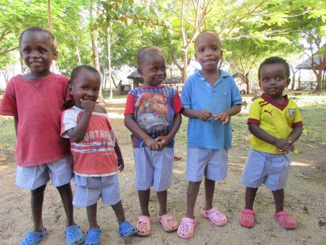 With so many little boys to kit out we are gratedful to Lesley Pidcock for the lovely, bright, material she gave Mama to take back from the UK which our seamstress Lucy has turned into lovely shorts.