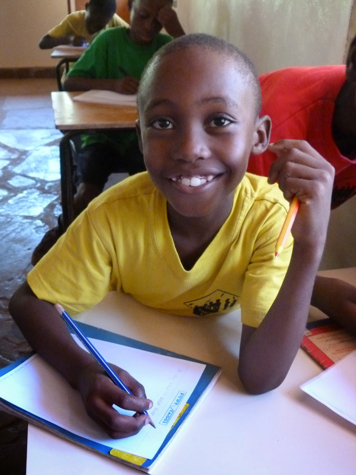 Evans writes: Hello, we were very happy that our mama and papa were coming back home from the UK.