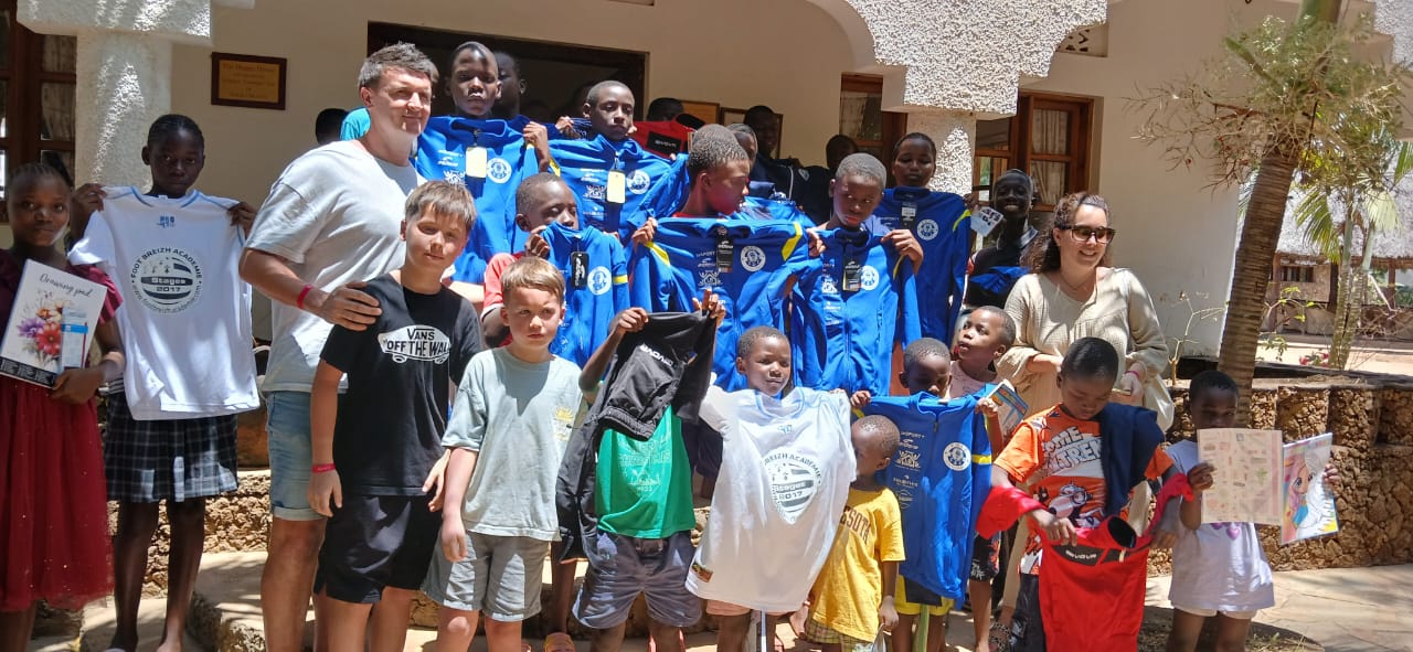 This weekend, we were delighted to welcome Jonathan and Julie, visiting us all the way from France. They arrived with a wonderful surprise: a bright blue football kit for our young players.