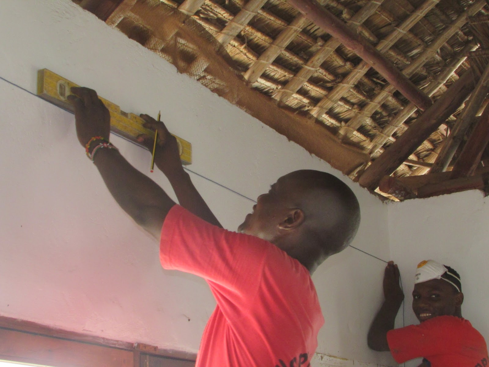 He is currently installing a ceiling in the school office which will reduce the dust that comes in through the makuti thatched roof.