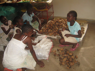 Sorting out the potatoes ready for the pot is something the kids are more than happy to do.