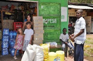 On Thursday, we went with Isaac and his shopping list,  to make purchases in a small shop in Timboni.