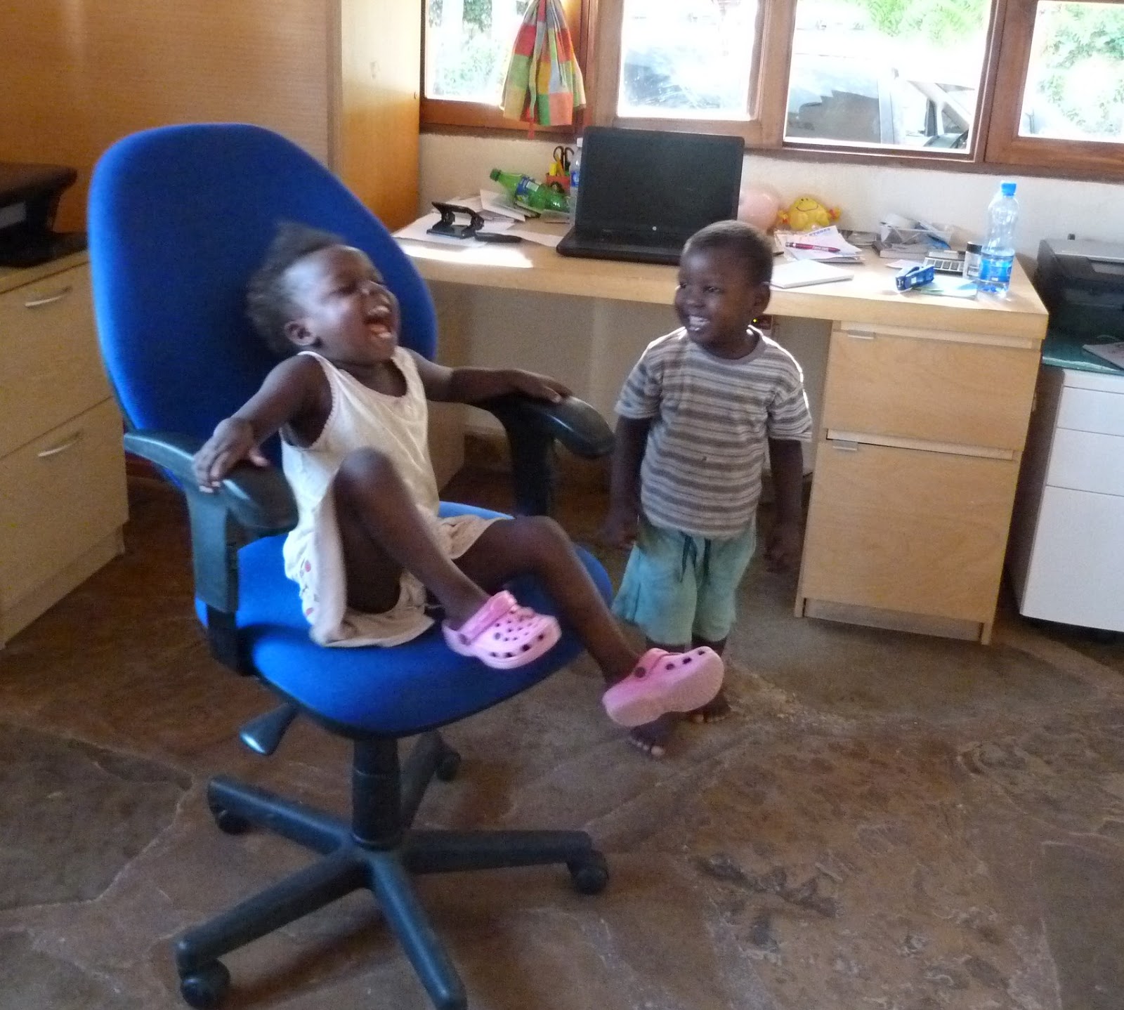 They love nothing more than to whiz it up and down the office, or ride it like a roundabout , taking it in turns to give it a twirl.