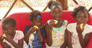 The children had serving of refreshing pineapple plus a few sweeties each.