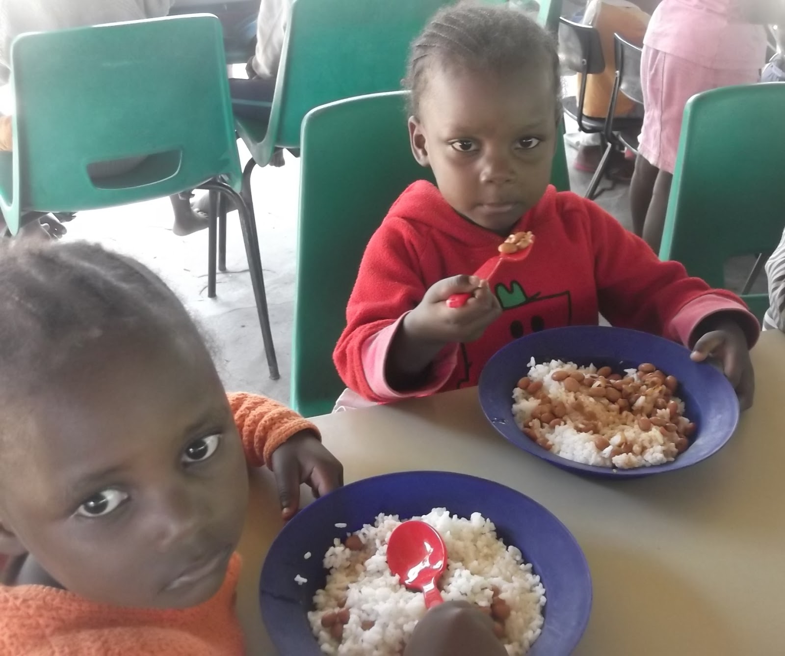 After a quick wash, and they were put straight into by the kids tucking into rice and beans.