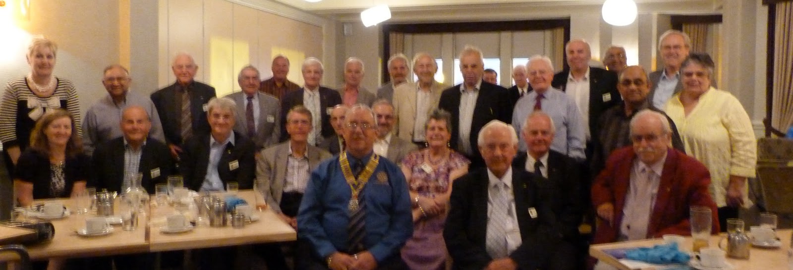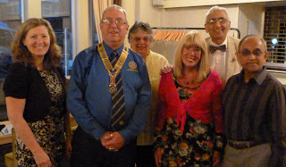 Top picture: Elizabeth with Angela Butcher (secretary) Gary Pretty (president), Gail Williams (president elect), Ramesh Gandhi and Vas Vasudev. Left: Rotary officers and members.