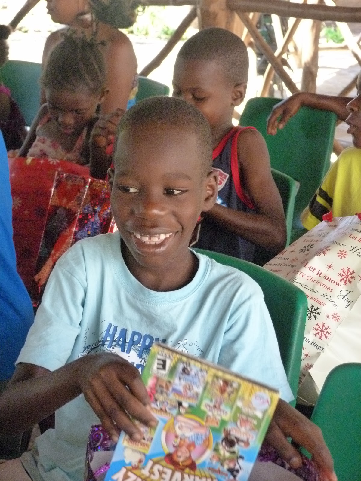 Then while some stayed in the banda to dance other kids went off in groups to take a closer look at their gifts, to try on new clothes or to read their book, play a game or just to take a quick nap.