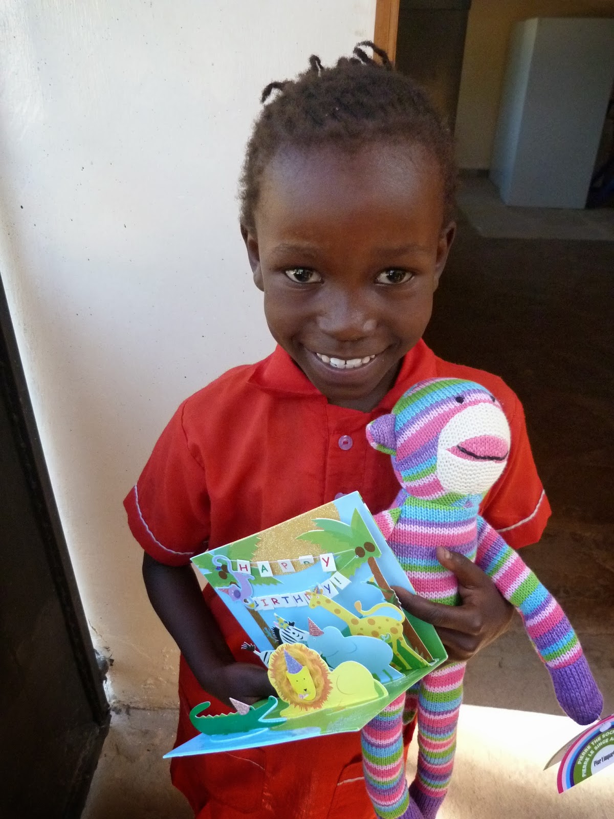 But now, after helping her Happy House brothers and sisters celebrate so many birthdays , Saumu was looking forward to her special day with her gifts and card presented to her by Papa at Kidz Club when everyone joined in the birthday song.