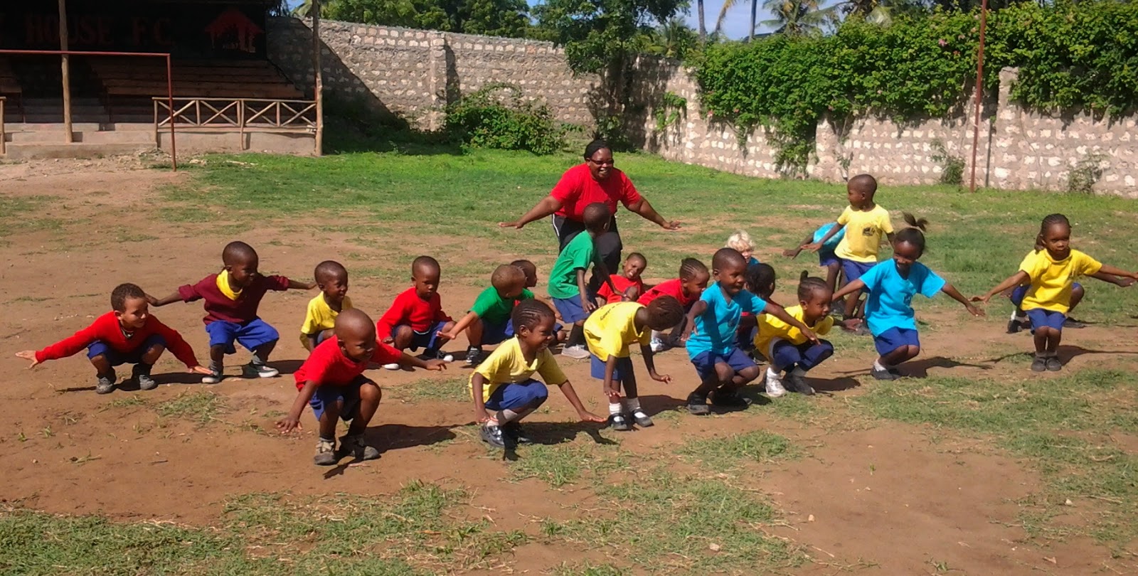 KG 2 enjoyed being out on the Happy house field with teacher Madam Gettry for a Physical Education lesson.They started with press-ups led by teacher Steve then a singing game with their teacher, Md Gettry.